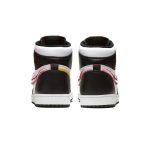 The Air Jordan 1 High “Defiant” is a unique colorway of the iconic model featuring “unstitched” Swooshes on the lateral sides. The eye-catching construction features a black and white leather upper with red contrast stitching throughout, including for the deconstructed stitching that makes the shape of the Swoosh, intended to appear as if the leather Swoosh was cut off. Intact yellow leather Swooshes are found on each medial side. A black leather tongue and Air Jordan “wings” logo patches complete the distinct colorway.