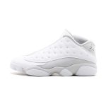 An icy white shoe option can always do your collection good, especially during the summer months. Enter the Air Jordan 13 Retro Low in the Pure Platinum colorway. As the nickname infers, we see the classic silhouette sport a pristine look. Credit that to an upper constructed with premium white tumbled leather on the toe and dimpled side panel. The mudguard features a clean suede in Pure Platinum that gives the design a simple, yet luxurious feel. The inner lining features the same colorway. Additional Jumpman branding appears on the heel in Metallic Silver to complete the slick Air Jordan design.